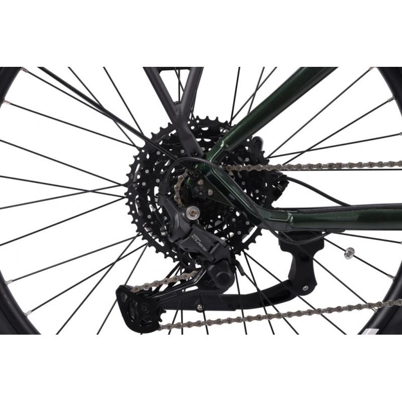 Shimano CUES U6000 girsystem med Linkglide-teknologi er utviklet spesielt for elsykler og er opptil 300 prosent mer slitesterkt enn tradisjonelle drivverk. Dette gir jevne girskift og lang levetid selv ved høy belastning.