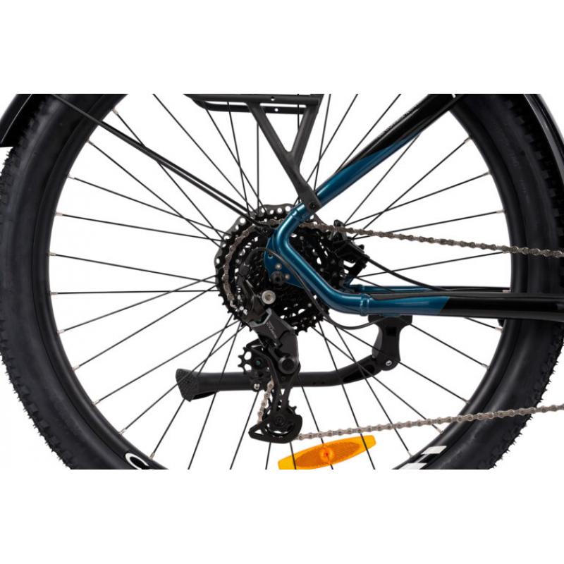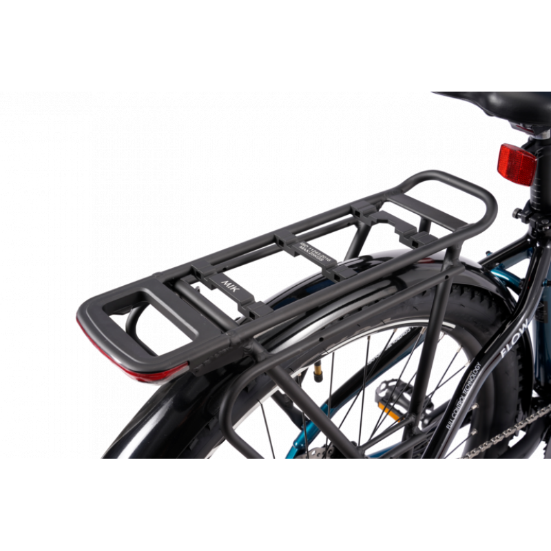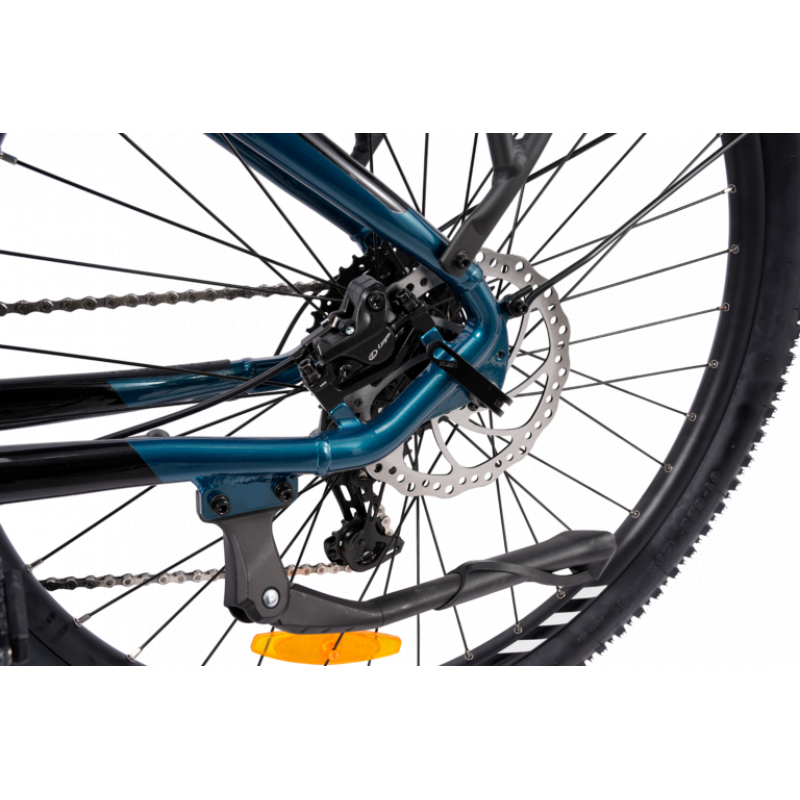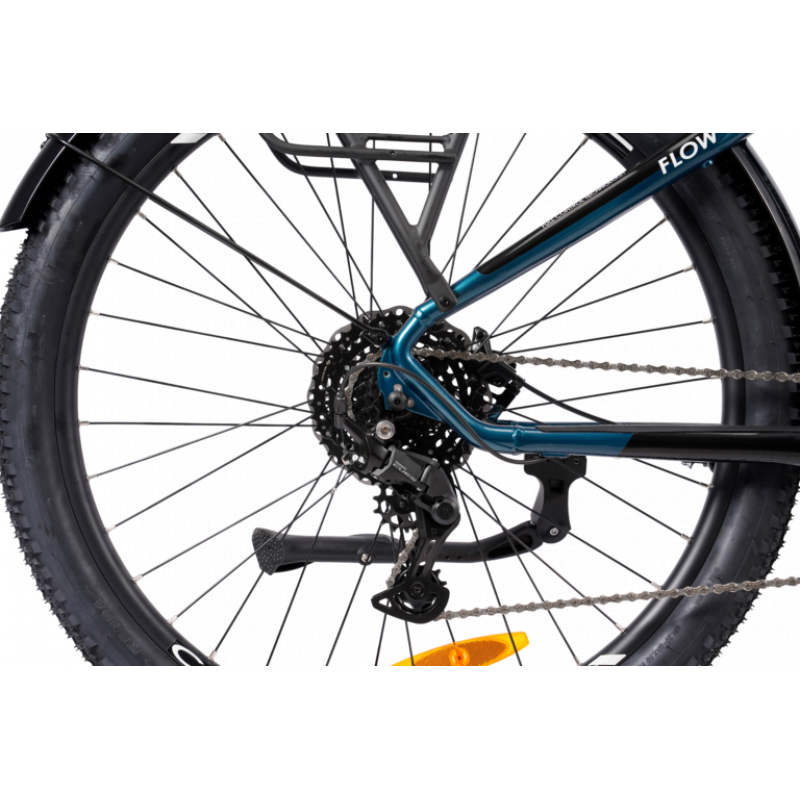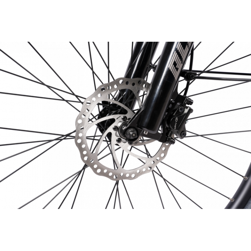 Flow EQ Wave er også bygget for komfort. Den leveres med komfortsadel, ergonomiske holker og en RST Blaze dempegaffel med 120 mm vandring som jevner ut ujevnt underlag. Forsterkede felger, kraftige eiker og maskinlagrede nav gir høy slitestyrke og stabilitet.