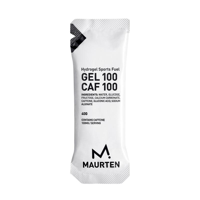 GEL 100 CAF 100 inneholder 100 mg koffein – tilsvarende 1.5 espressoer eller en kopp brygget kaffe. Det er mye sammenlignet med mange tradisjonelle geler. Den gir 25 gram karbohydrater gjennom en unik blanding av fruktose og glukose (forhold 0.8:1). Den har et høyt vekt-til-energi-forhold og inneholder ingen tilsatte smaker. konserveringsmidler eller fargestoffer. Som alle våre produkter er den vegansk. Bruk GEL 100 CAF 100 alene under kortere økter. eller kombiner den med andre Maurten-produkter for å sikre at du får nok karbohydrater gjennom hele økten.
