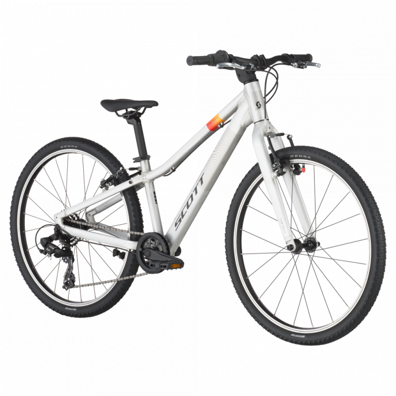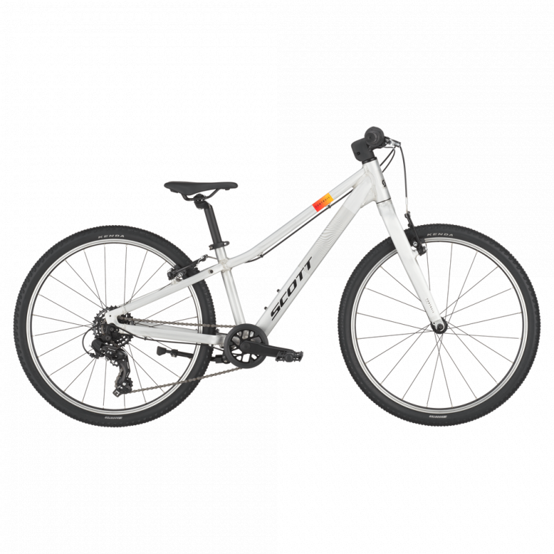 Rammen i SCOTT Kids24 Alloy 6061 aluminium er lett, slitesterk og tilpasset barnegeometri. Den gir stabil og komfortabel sittestilling, samtidig som sykkelen er enkel å manøvrere. Den stive aluminiumsgaffelen holder vekten nede og gir direkte og presis styring, noe som gjør sykkelen responsiv og morsom å sykle på.