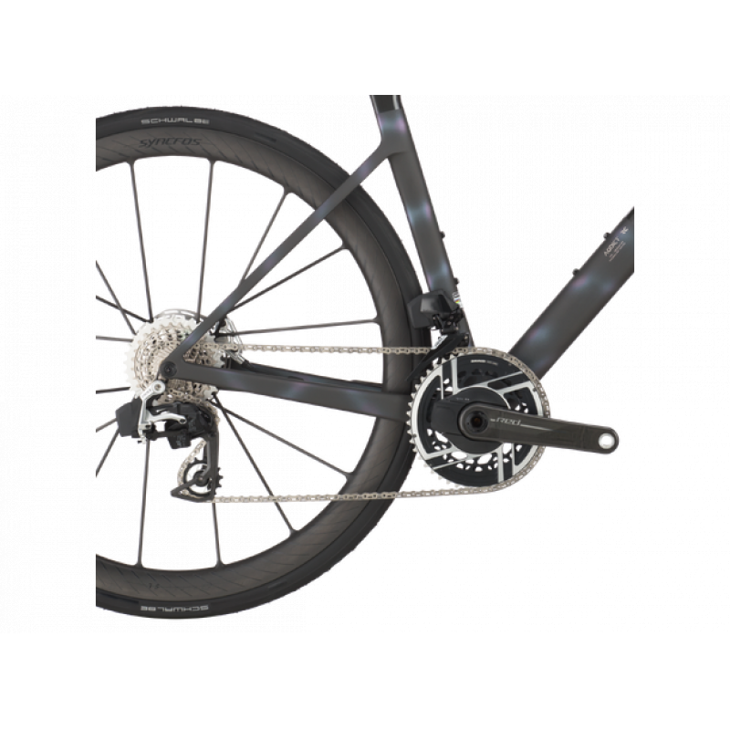 SRAM RED AXS elektronisk drivverk med integrert wattmåler leverer trådløs, lynrask og presis giring, mens Syncros Capital SL karbonhjul sørger for eksplosiv akselerasjon og stabilitet i høy hastighet. Resultatet er en konkurransemaskin som er like rå i ritt som på harde treningsøkter.