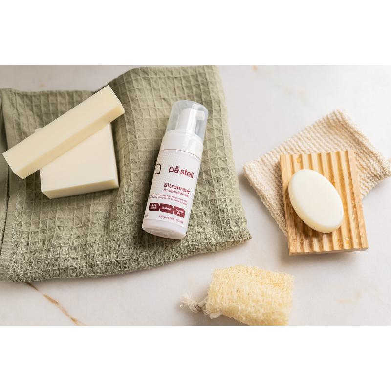Fri for palmeolje, kjemikalier og syntetisk parfyme. Økologisk, vegansk og biologisk nedbrytbar. Skånsom for huden. Sitronrens er laget av naturlige oljer fra sitron, raps, solsikke og kokos. 15-30% såpe, Sitronolje (kba). Den naturlige sitonoljen inneholder limonene og citral som naturlig del av oljen. Limonene utgjør >0,5%. Produsert i EU. Miljøsertifisert av NCP. 115ml