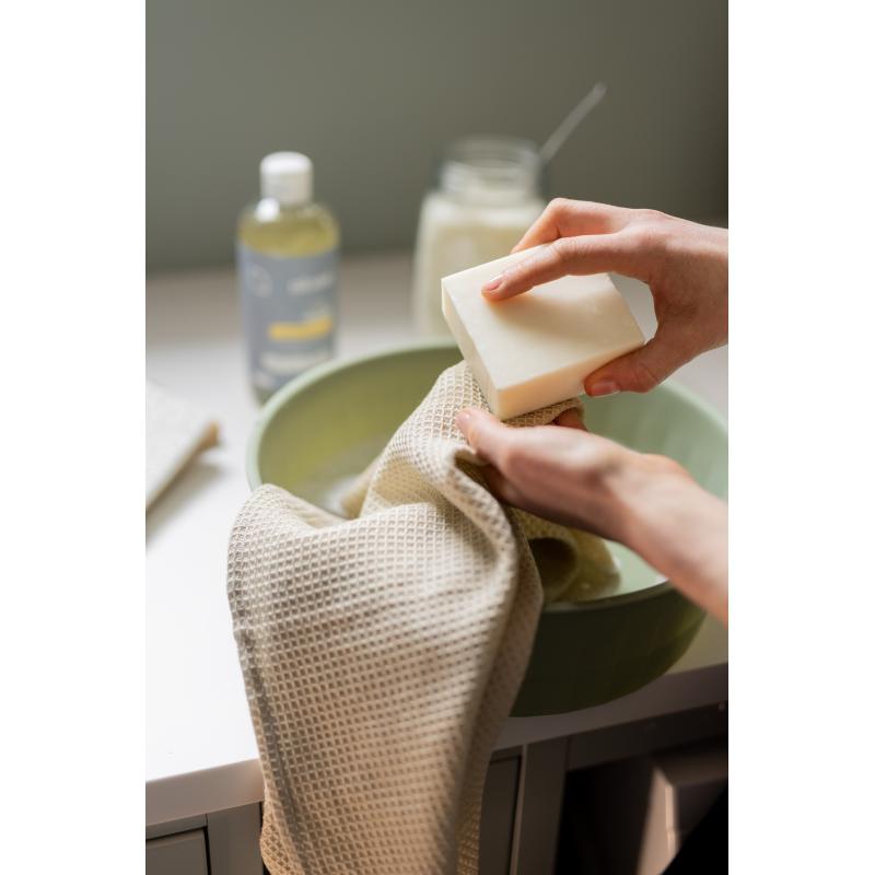 Fri for palmeolje, kjemikalier og syntetisk parfyme. Økologisk, vegansk og biologisk nedbrytbar. Skånsom mot huden. Laget av naturlige oljer fra sitron, raps, solsikke og kokos. >75% såpe, Plantebasert Glycerine, Sitronolje (kbA), Den naturlige sitronoljen inneholder limonene og citral som naturlig del av oljen. Limonene utgjør