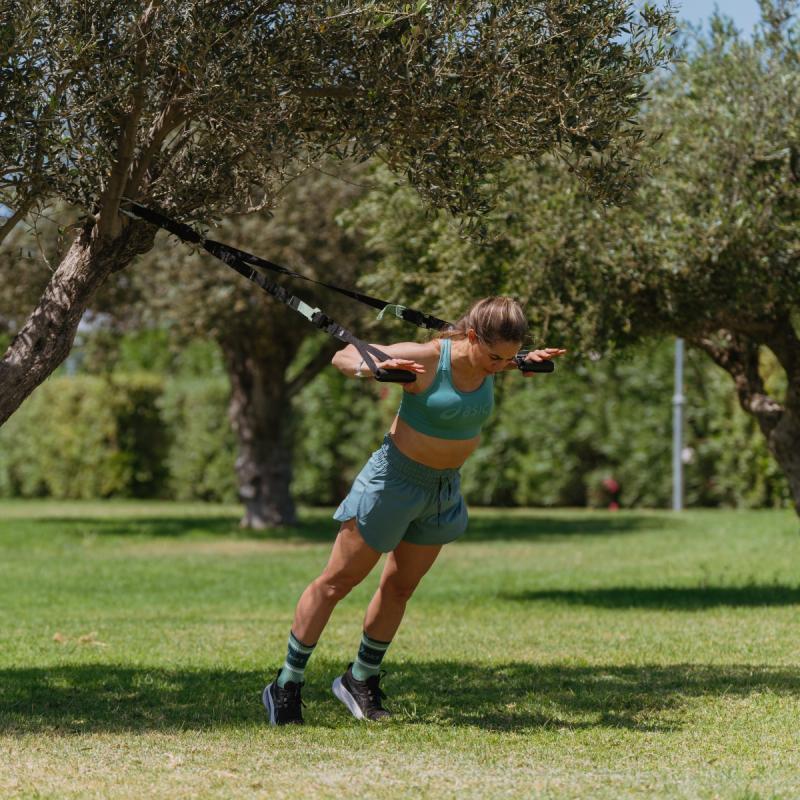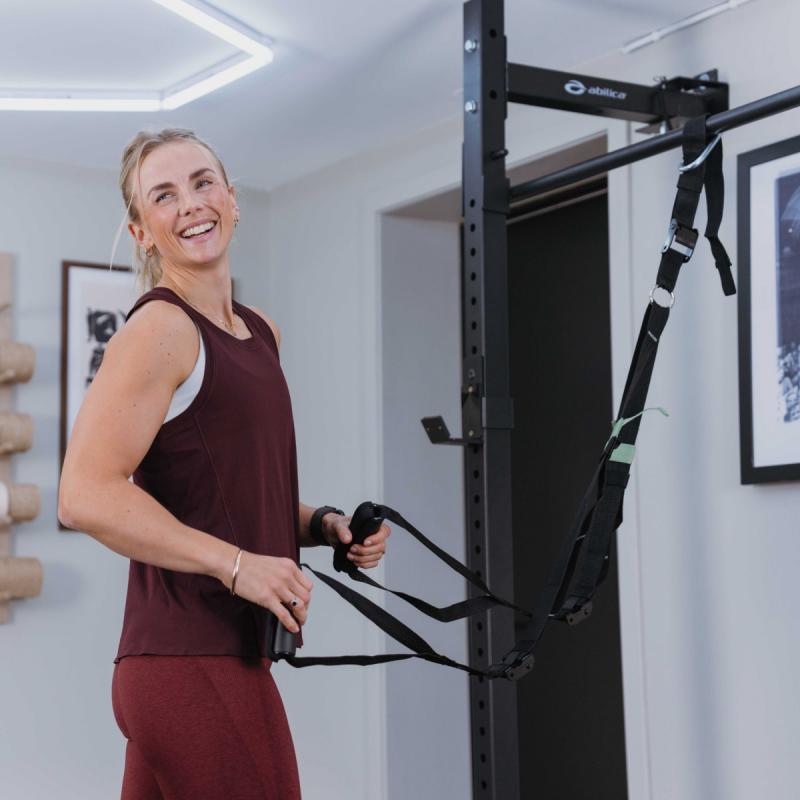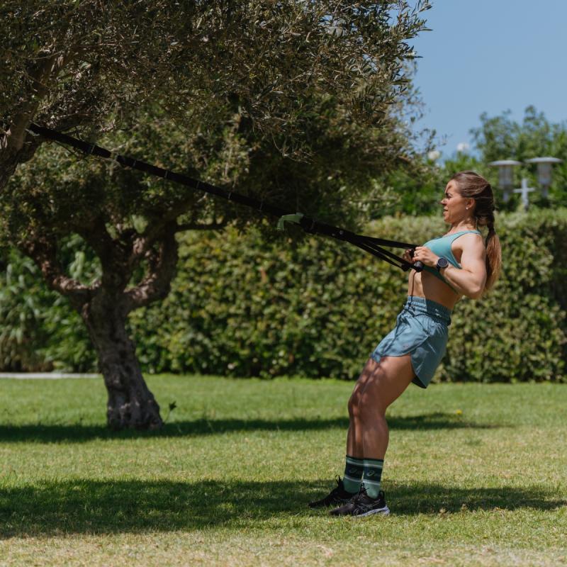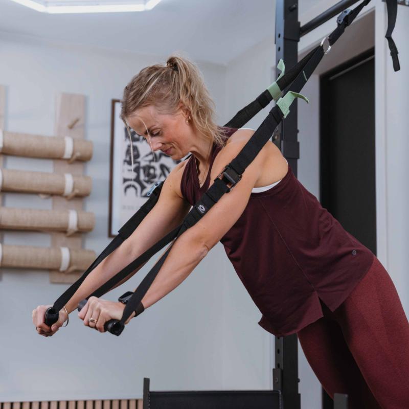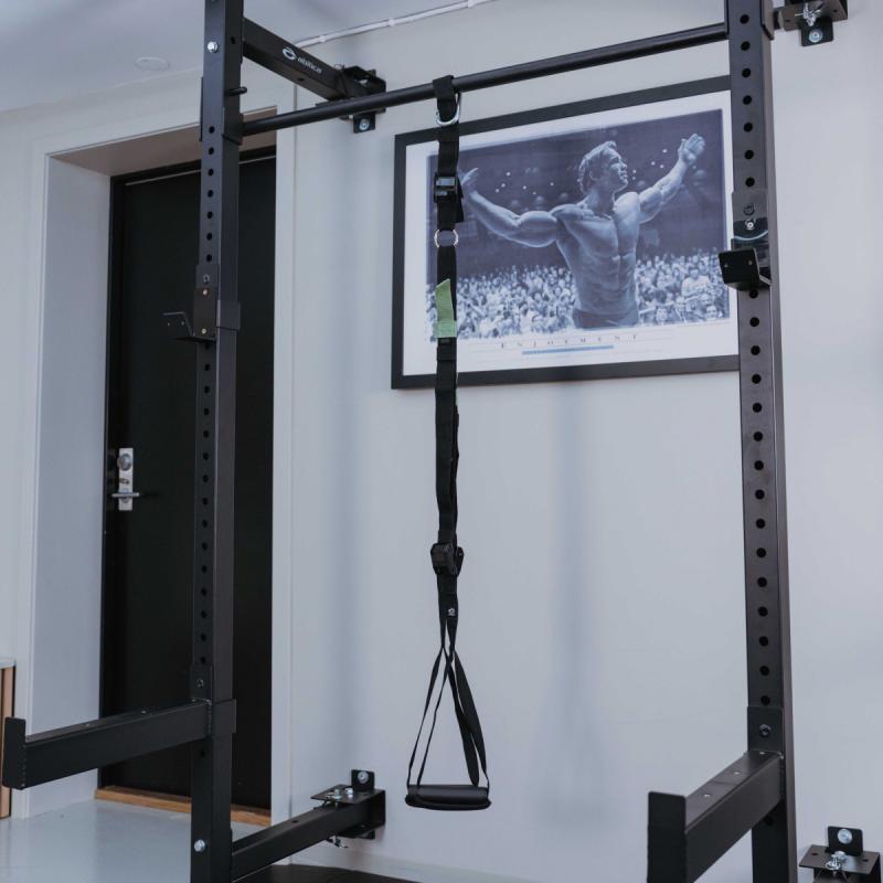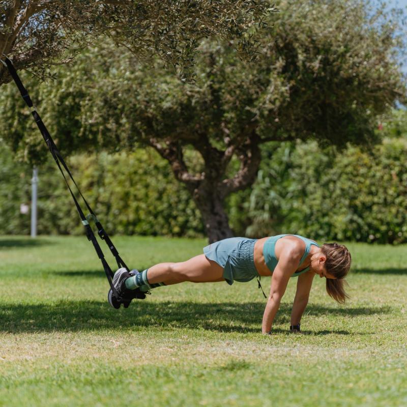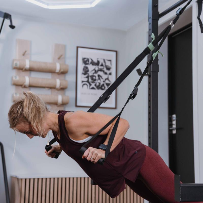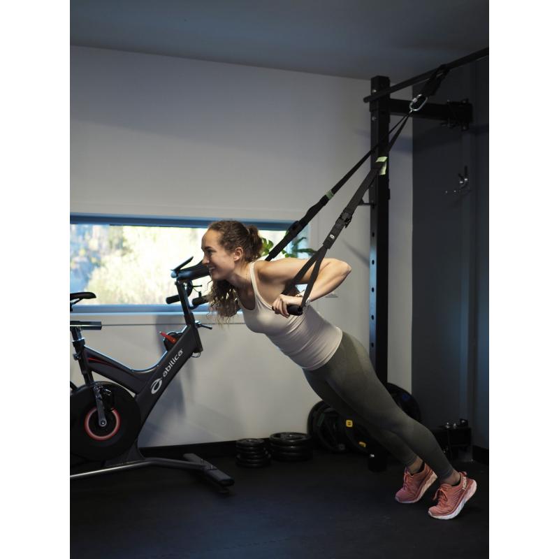 Slyngetreningssystem som gir mulighet til å trene styrke og kjernemuskulatur på en meget effektiv måte på liten plass. Krok og dørfeste følger med.
