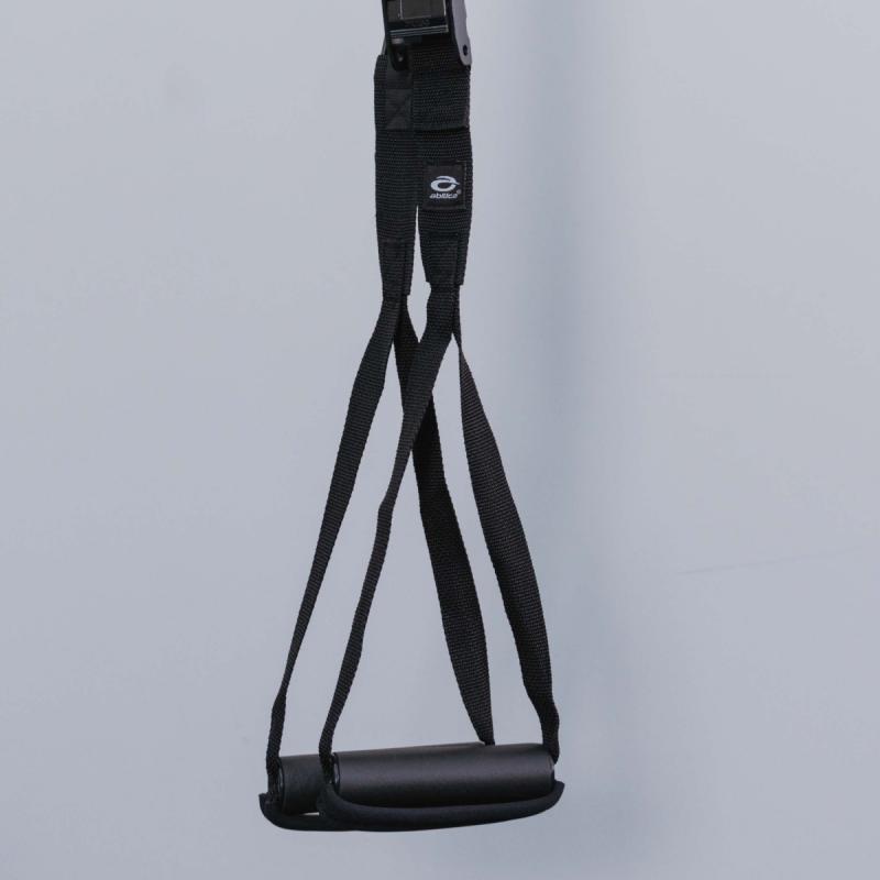 Produsert i stål, vevet nylon, neoprene, NBR og PP materiale. Treningsslynge med krok og dørfeste. Maks brukervekt er 150 kg.