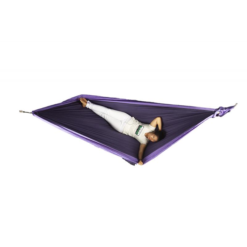 Original er hengekøyen for deg som vil ha en hengekøye som dekker alle turer og bruksområder. uansett om du er på tur på kollen bak huset eller på reise jorda rundt. Original passer like godt i hagen. på hytta. på seilbåten eller i parken. Er du glad i friluftsliv og overnatting er Original den mest anvennelige modellen. Original har plass til to voksne personer som sitter anføttes for en god prat. eller en liten gjeng småbarn som huskes frem og tilbake for lek og moro. Hengekøyen monteres enkelt rett ut fra den halvmåneformede oppbevaringsposen og er umiddelbart klar til bruk på under ett minutt.For avsapping. lek og moro bør opphenget være slakt. Da kan du enten sitte på tvers eller ligge helt horisonalt (flatt) ved å ligge i 45 graders vinkel. Original er godt egnet for overnatting med liggeunderlag da den har høye sidekanter som beskytter mot vind og gir nødvendig sidestøtte i løpet av natta. For soving anbefaler vi at du strammer opp hengekøya før du legger deg slik at liggeunderlagt holder seg på plass under deg. Du kan også legge klær etc. under rumpa (under underlaget) for å ligge tilnærmet horisontalt. Skal du sove i hengekøya bør du helst være alene. Vi anbefaler å bruke opphengstau som kjøpes separat da lengden er tilpasset og tau/bånd ferdig strukket slik at ikke hengekøya siger i bakken under bruk. Ticket To The Moon hengekøyer er laget av et elastisk nylonsmateriale som fordeler trykket jevnt over hele kroppen. Materialet puster godt og gir god brukskomfort. I tillegg til å være Norges mest solgte hengekøye er den trolig markedets mest slitesterke hengekøye.