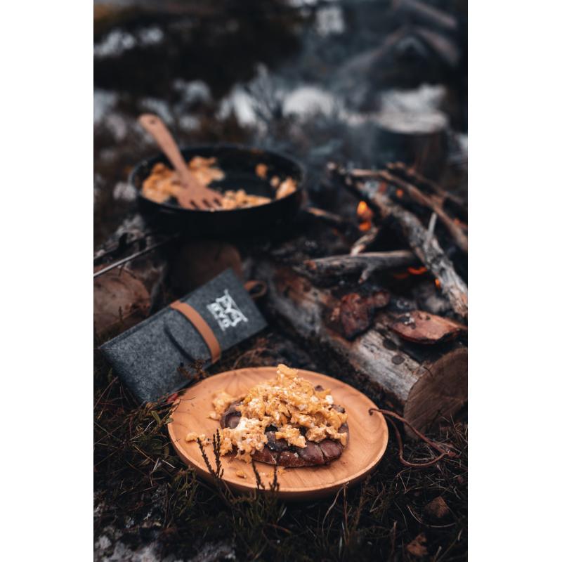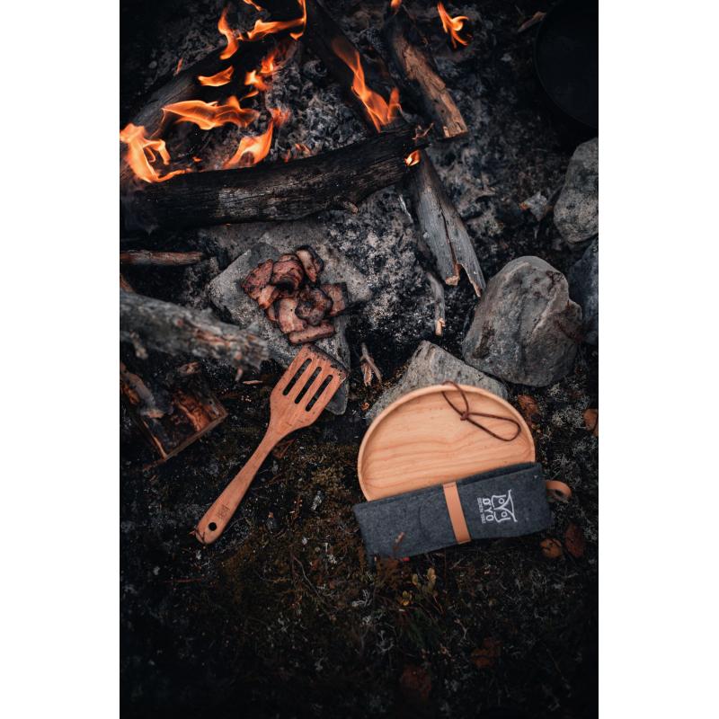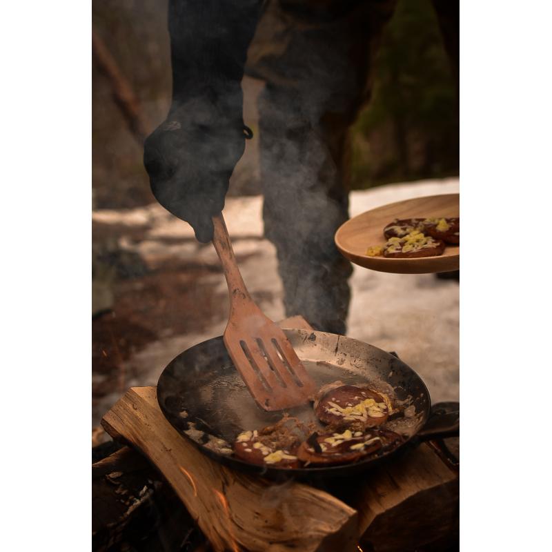 Når bålet har fått god fyr og det er klart for dagens kulinariske opplevelse er turstekespaden god å ha. Den har avrundede hjørnene kommer lett til overalt i små turpanner og -kjeler. Den har en skinnsnor som gjør at den kan henges opp der det måtte være praktisk.